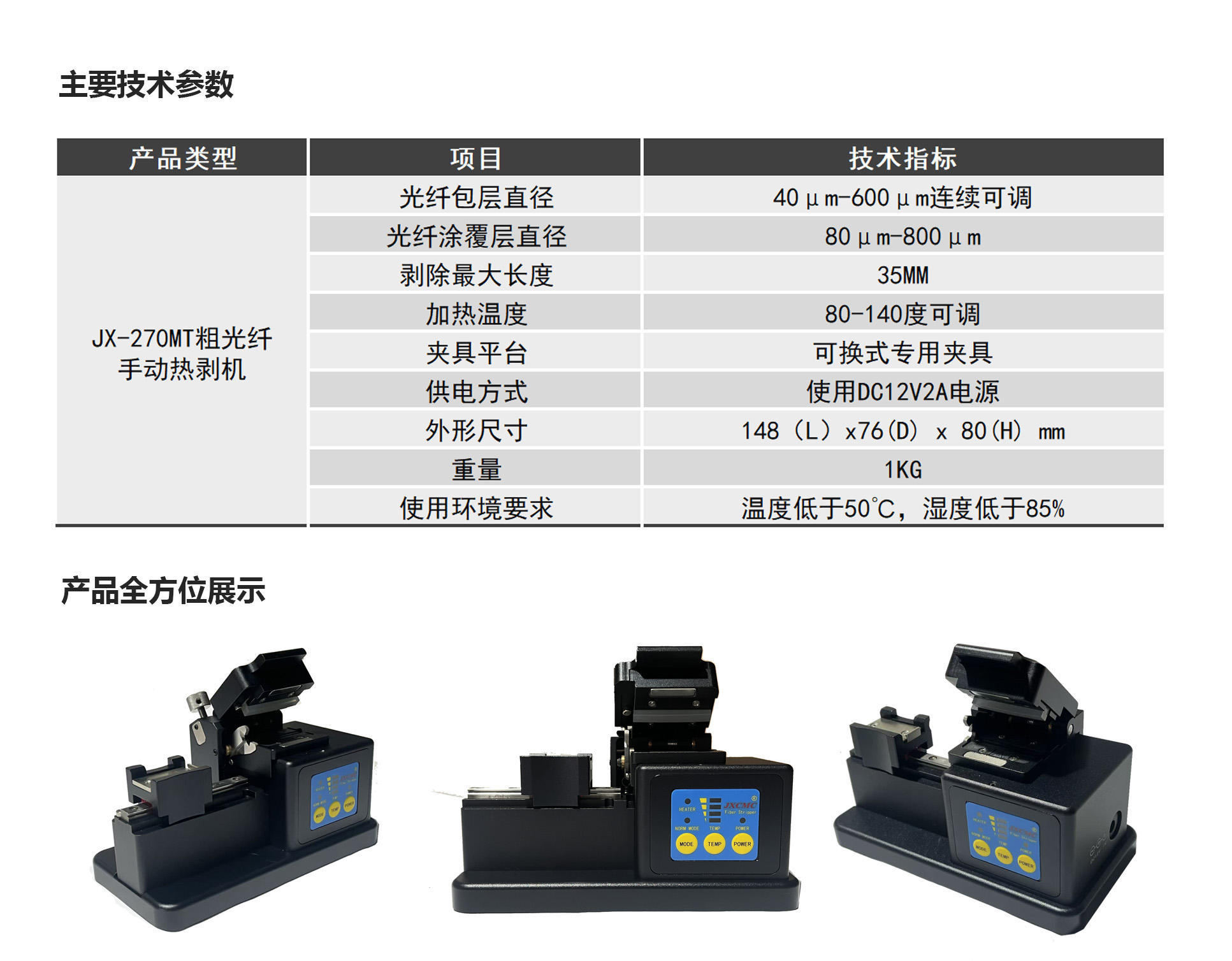 3.可根据不同光纤的直径,调节刀口及温度来达到好的剥除效果,可剥范围广;